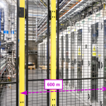 - kép: A gyorsítóalagút mellett párhuzamosan futó műszercsarnok egy részlete a biztonsági rács mögött elhelyezkedő működtető és kiszolgáló egységekkel. A folyosó szélességét a rack-szekrények sora érzékelteti, hossza a biztonsági rács irányában 600 méter.