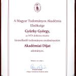 A Magyar Tudományos Akadémia Elnöksége kiemelkedő tudományos munkássága elismeréseként megosztott Akadémiai Díjban részesítette: