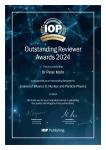 We are proud to report that Peter Mohr affiliated to HUN-REN ATOMKI was recognised as an outstanding reviewer for IOP Journal of Physics G: Nuclear and Particle Physics in 2024.