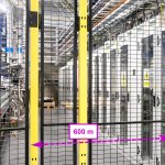 - kép: A gyorsítóalagút mellett párhuzamosan futó műszercsarnok egy részlete a biztonsági rács mögött elhelyezkedő működtető és kiszolgáló egységekkel. A folyosó szélességét a rack-szekrények sora érzékelteti, hossza a biztonsági rács irányában 600 méter.