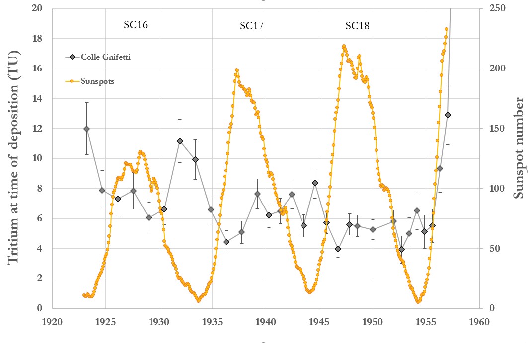 A kutatók idén nyáron a Journal of Geophysical Research: Atmospheres folyóiratban közzétették az eddigi mérések eredményeit. Vizsgálataik alapján azt találták, hogy a Föld légkörében természetes úton keletkező trícium mennyisége antikorrelációban van a Nap felszínén lévő napfoltok mennyiségével. Vagyis ha sok a napfolt, akkor kevesebb trícium keletkezik, ha kevés a napfolt, akkor több trícium keletkezik. Ezt úgy lehet magyarázni, hogy a sok napfolt idején a Nap mágneses térereje megnő, ami leárnyékolja az űrből jövő kozmikus sugárzás egy részét, így kevesebb kozmikus részecske éri el a földi magaslégkört, miáltal kevesebb trícium keletkezik.