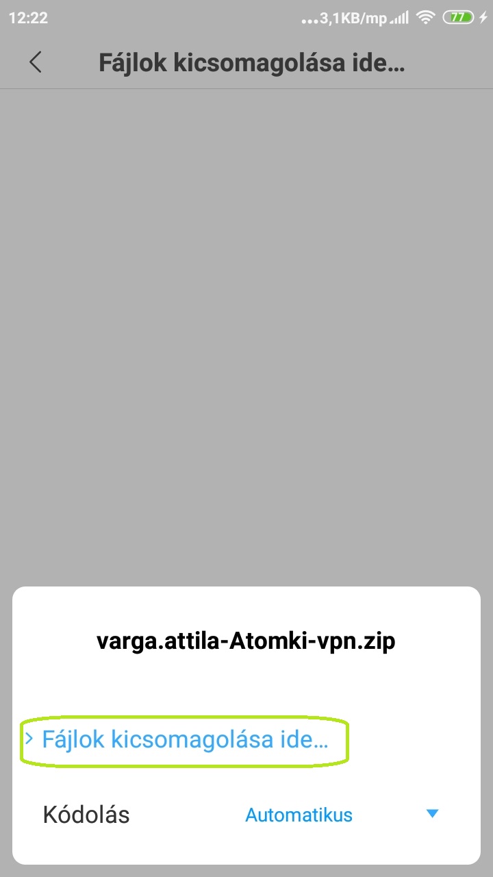 - A kapott kulcsok és tanúsítvány (felhasználónév-atomki.ovpn) elhelyezése egy könyvtárban: